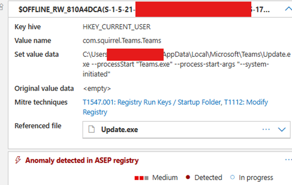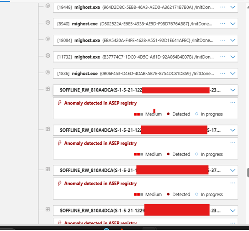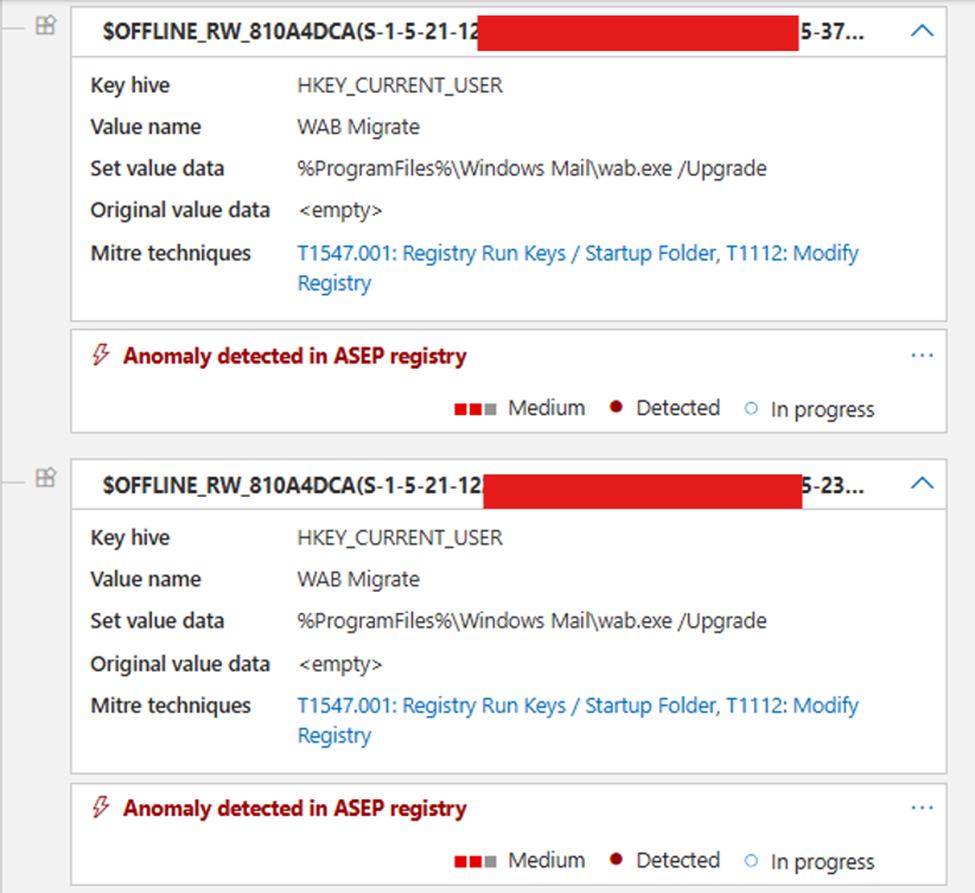 And since the user wasn’t logged in during the upgrade, MDE labeled those entries as offline_rw_HEX, meaning modifications to offline user hives.