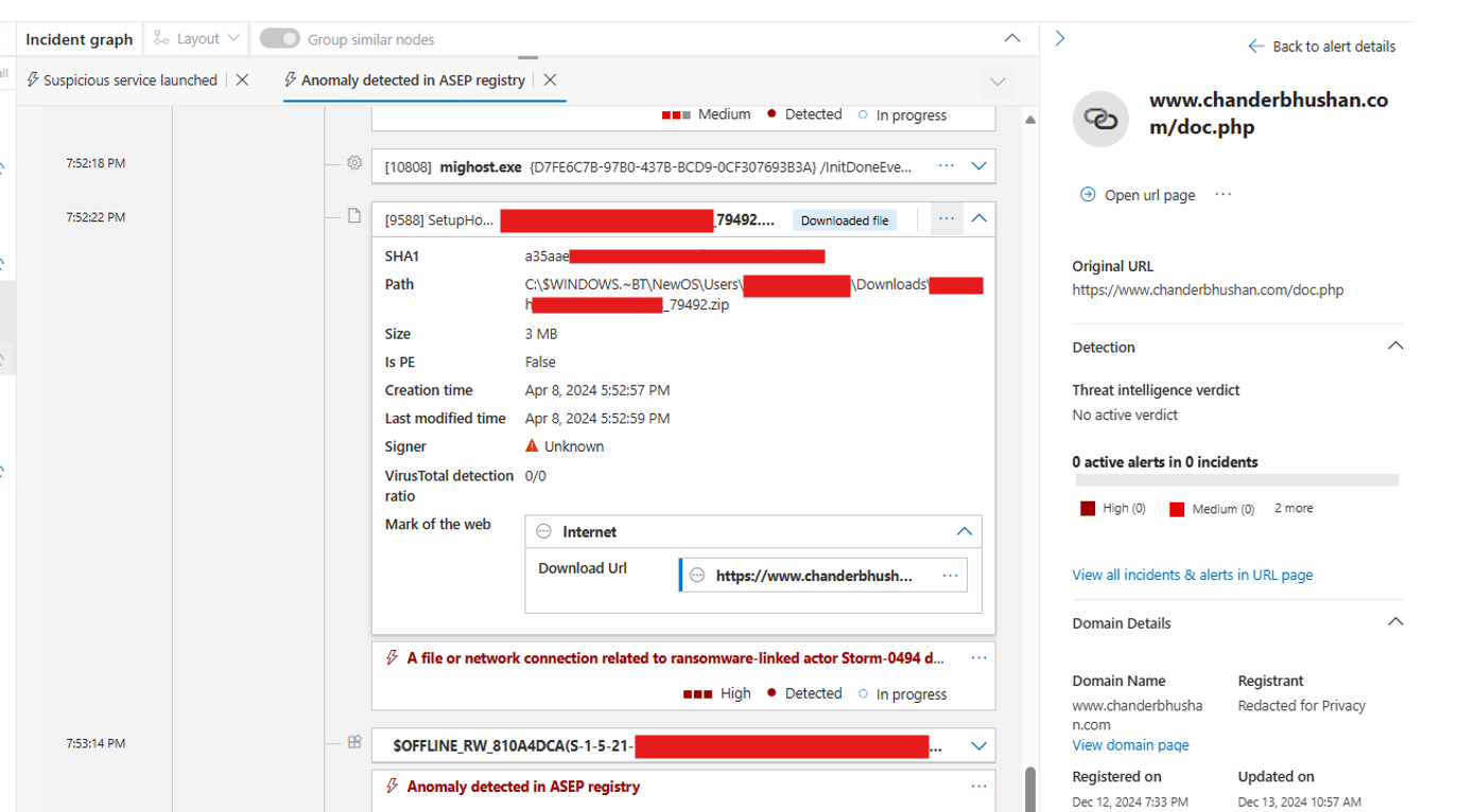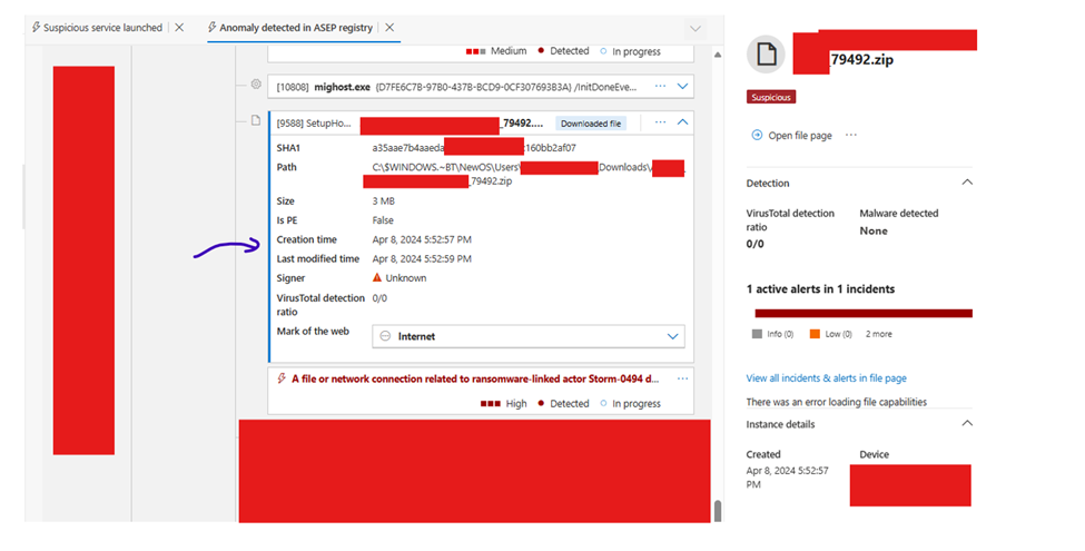 What didn’t make sense was why Defender treated this as a multi-stage ransomware event when the only malicious element was an old ZIP file quietly sitting on disk. Why now? Why label it as active ransomware?