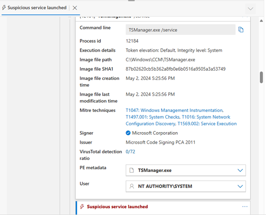 A quick Google search confirmed that TSManager.exe is part of SCCM, responsible for handling task sequences during deployments and updates. I also double-checked the LOLBAS project just in case it was one of those dual-use binaries that could be abused by attackers, it wasn’t.