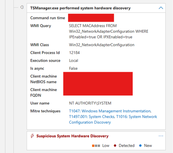 The second alert, “Suspicious hardware discovery,” didn’t concern me much. In my experience, those are rarely true positives. (Though, part of me kind of wants to see one… just without dealing with the aftermath, obviously.)