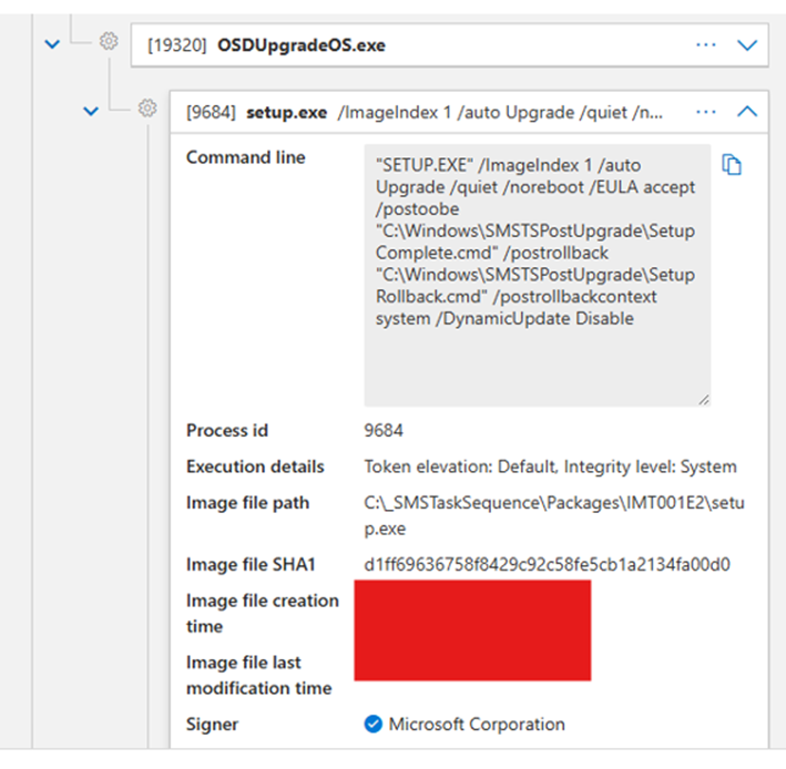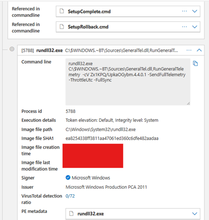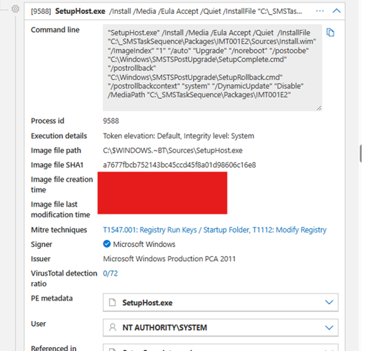 There were also two CMD scripts for post-upgrade or rollback operations. Once again, perfectly normal behavior for an in-place Windows upgrade. I validated both using Invoke FileProfile on their hashes, they were common across multiple environments.